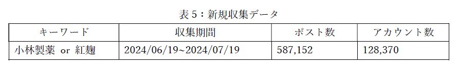 小林製薬に関する投稿のデータを追加で収集した。表5に示すデータと新たなデータの両方を分析に使用した。